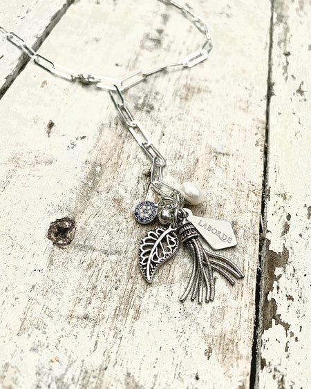Sterling Silver Paperclip Chain Cluster Necklace